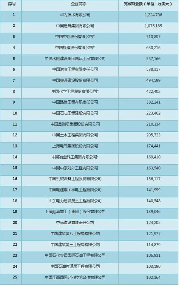 2月24日,商务部宣布《2020年我国对外承包工程业务完成营业额前100家企业》榜单。