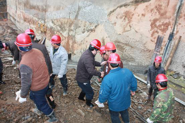 董事长、总经理王元旦一行首先来到基坑浇筑、混凝土搅拌站等施工现场进行观察,与施工人员一一握手,并听取了春节期间领导员工奋战在施工一线的公司副总经理聂玉和的生产情况汇报。董事长、总经理王元旦详细询问了搅拌站的生产能力能否满足施工要求,工程的进展情况及后期施工中的各项步伐,对项目部全体员工放弃节假日抢工期、保质量、抓进度的贡献精神给充分肯定和高度评价,他勉励各人包管质量宁静的前提下,抓紧时间完成大坝防渗面板的施工、再苦再累也要咬紧牙关挺已往,并要求施工项目部合理安排好各人春节期间的事情和生活。