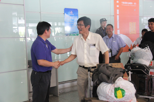 当公司援阿富汗项目技术人员一行走出站口时,受到董事长、总经理王元旦等人的热烈接待,并收到公司员工送上的鲜花。王总饱含深情的说,你们辛苦了!接待你们凯旋,你们为祖国争得了荣誉,为江西水建争得了荣誉!