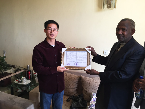 近期,在我效劳地方在地社区居民Alemayehu Bekele家不幸遭遇无情火灾、家庭陷入极端困境的时刻,江西水建驻埃分公司向其伸出援手,助其迅速重建家园。事后,Gotera社区协调员及警察所官员一行为我公司这种义举体现赞赏并宣布了谢谢证证书。