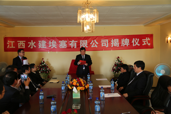 2015年4月26日埃塞外地时间上午10点,江西水建埃塞有限公司在埃塞举行揭牌仪式。公司董事长王元旦、总经理徐洪良、副总经理兼外洋公司执行董事张周平、副总经理兼外洋公司总经理黄郑民、副总经理王俊华等领导及在埃员工加入了揭牌仪式,公司董事长王元旦和埃塞有限公司总经理王毓平配合为埃塞公司揭牌并致辞。