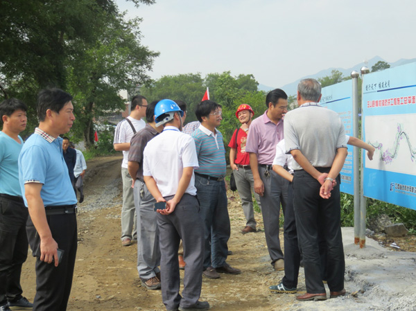 为进一步落实8月8日全省水利建设推进会精神,2014年9月21日上午,以水利厅副厅长廖瑞钊为组长的督查组来到我公司承建的上饶市玉山县樟村镇防洪工程现场检查指导事情。督查组一行深入工地全线施工现场,每到一处都详细询问各参建单位情况,了解工程的投资规模、设计计划及进度、质量控制情况。督察组对樟村镇防洪工程施工质量尤其是工程外观体现很是满意。在看了工地整齐规范的五图一牌及公司形象宣传栏后,廖瑞钊副厅长对我公司的标准化施工治理给予了高度评价,还时时拍照纪录,并要求玉山县水利局在全县其他水利建设工地参照学习并加以推广。在检查完工地现场后,督察组在樟村镇政府就防洪工程设计、施工、及乡镇计划召开了座谈会。