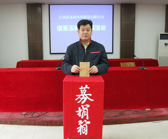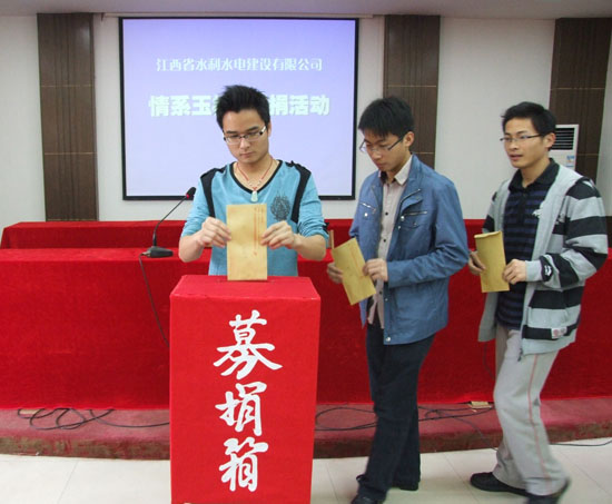 2010年4月14日,青海省玉树县爆发两次地动,最高震级7.1级,造成了外地巨大的人身伤亡和工业损失,“玉树地动”牵动着亿万人民的心,也牵动着我司所有员工的心!公司在全司规模内积极开展“情系玉树募捐运动”,4月26日,我公司南昌市机关总部首先开展了“情系玉树募捐运动”,公司中层以上治理人员和员工踊跃加入募捐运动,纷纷献上自己的一份爱心,体现出江西水总人的社会责任感!同时,各分公司、海内外施工项目部也在开展此项运动,预计此项运动将募得资金3万余元。