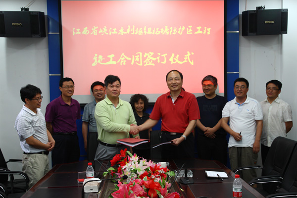 日前,我公司收到江西省峡6686体育利枢纽工程建设总指挥部中标通知,乐成中标峡6686体育利枢纽工程柘塘防护工程。5月11日上午,公司董事长总经理王元旦代表公司与业主签订施工条约协议书,条约额为8741.44万元。