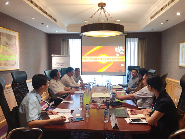 在印尼期间,王元旦董事长陪同中国出口信用包管公司江西分公司总经理徐敦鹏一行划分与我公司外地相助方、印尼PLN相关部分卖力人进行座谈交流。徐敦鹏总经理向我公司外地相助方及印尼PLN相关部分卖力人介绍了中国信保的政策性职能,听取了项目基本介绍,了解了外地水电站投资开发流程及政策,并就项目投融资结构搭建事宜进行深入相同,对项目落地起到了积极的推行动用。